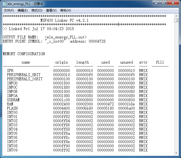 MSP430: Loading complete. Code Size - Text: 20864 bytes Data: 46 bytes.