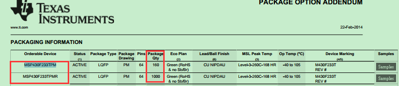 今天查了一下数据手册   我还是不明白比如MSP430F233TPM和MSP430TPMR有什么区别呢?