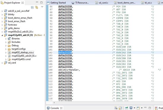 如我上图所修改的,你需要把ADC14 ISR对应的名字改成你的中断服务子程序名字。