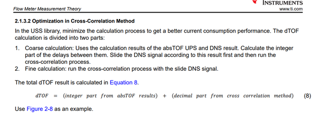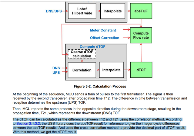 Ultrasonic Sensing Solution (USS) Guide 该文档里给出了气体的飞行时间差计算方法 一个是互相关后再插值 另一种是