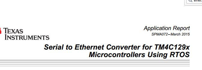刚才在论坛里看到有人说关于enet_s2e例程问题,请问TivaWare里有支持TM4C1294的串口以太网例程么?请问哪里能找到?急!!!