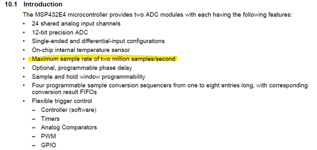 研读MSP432E401Y的参考手册时发现可以实现双ADC实现双倍的采样率