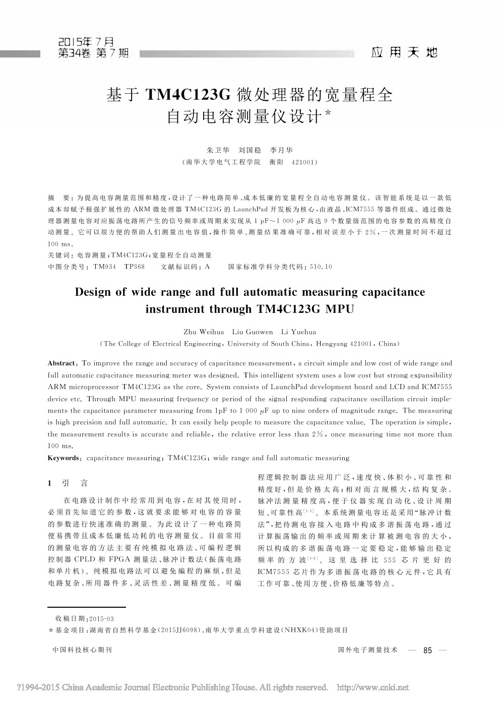基于TM4C123G微处理器的宽量程全自动电容测量仪设计