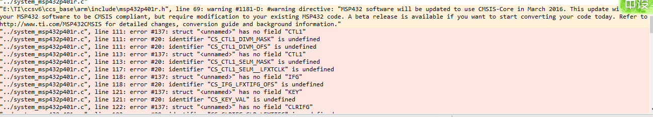 看样子是找不到宏定义,但是这些应该是都包含在MSP432P401R.H中,这个我打得开,重下msp ware也不行,重装软件也不行,希望有人解答,谢谢