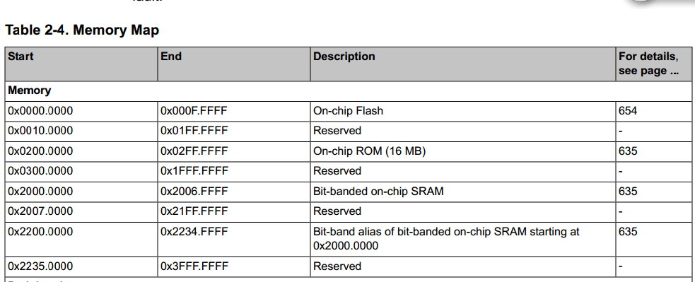 我查看了规格书,0x01000010开始到0x01FFFFFF, 是芯片的保留地址(如下),请问rom.h里面为什么这样定义?