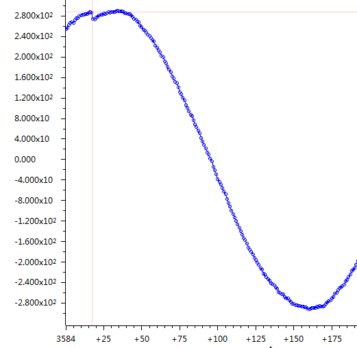 多路采样都会在同一时刻出现跳变,截图如下。三相交流电源输出的信号,示波器在同时看输入信号,没有跳变。
