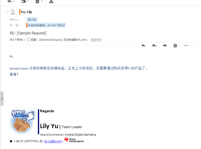 Sample team 没有权限帮您申请样品,正如上次所说的,您需要通过购买获得TI 的产品了。