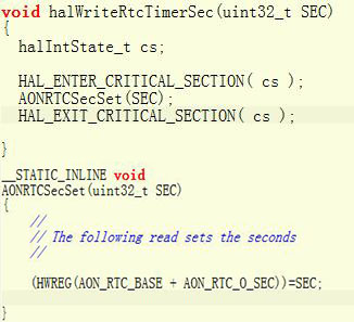 我在使用CC2640的RTC功能,但是发现范例程序hal_rtc_wrapper.c里没有写SEC Register的函数,只有读的函数(uint32 halReadRtcTimer( void )),不知道是否官方不允许写?我自己按读函数的格式写了个写函数,可以将数值写入SEC Register,但是写入后会造成主任务定时器的中断,即定时器无法周期地唤醒主任务了,不知道是不是不能直接写这个寄存器呢?