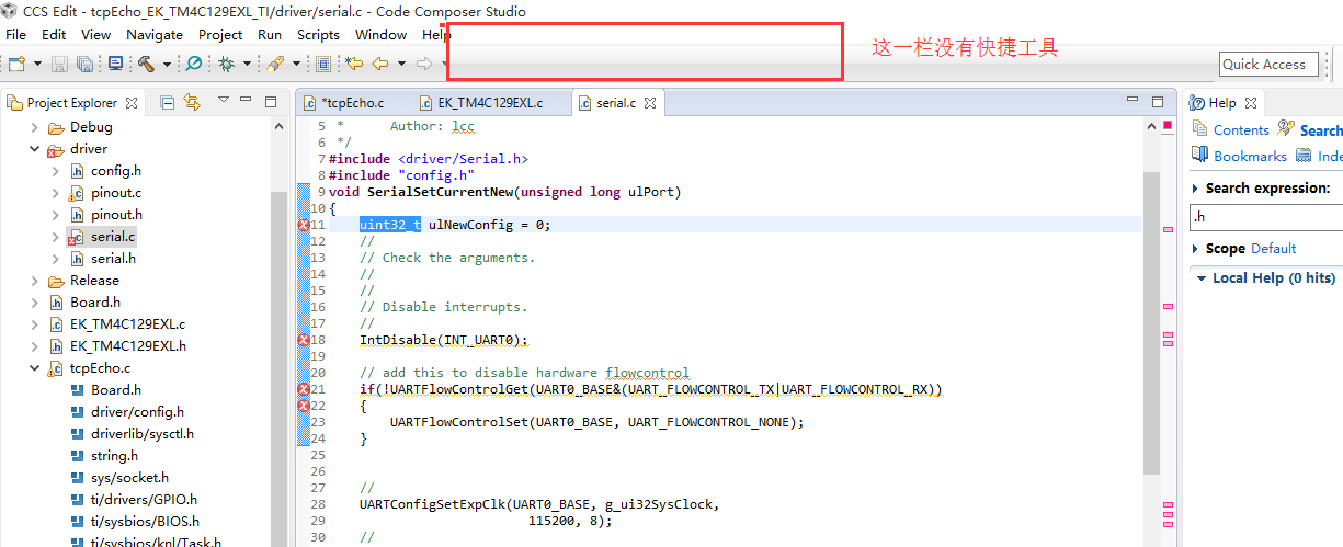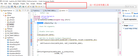 在其他编译工具中 比如说在config.h中声明很多.h文件,然后我想一起调用这些.h文件时,只要调用这一个congfig.h文件就好了,但是现在我在ccs这里却不能这样用 怎么回事,另外 怎么把工具栏的快捷方式调出来,还是ccs本身的快捷方式就不多