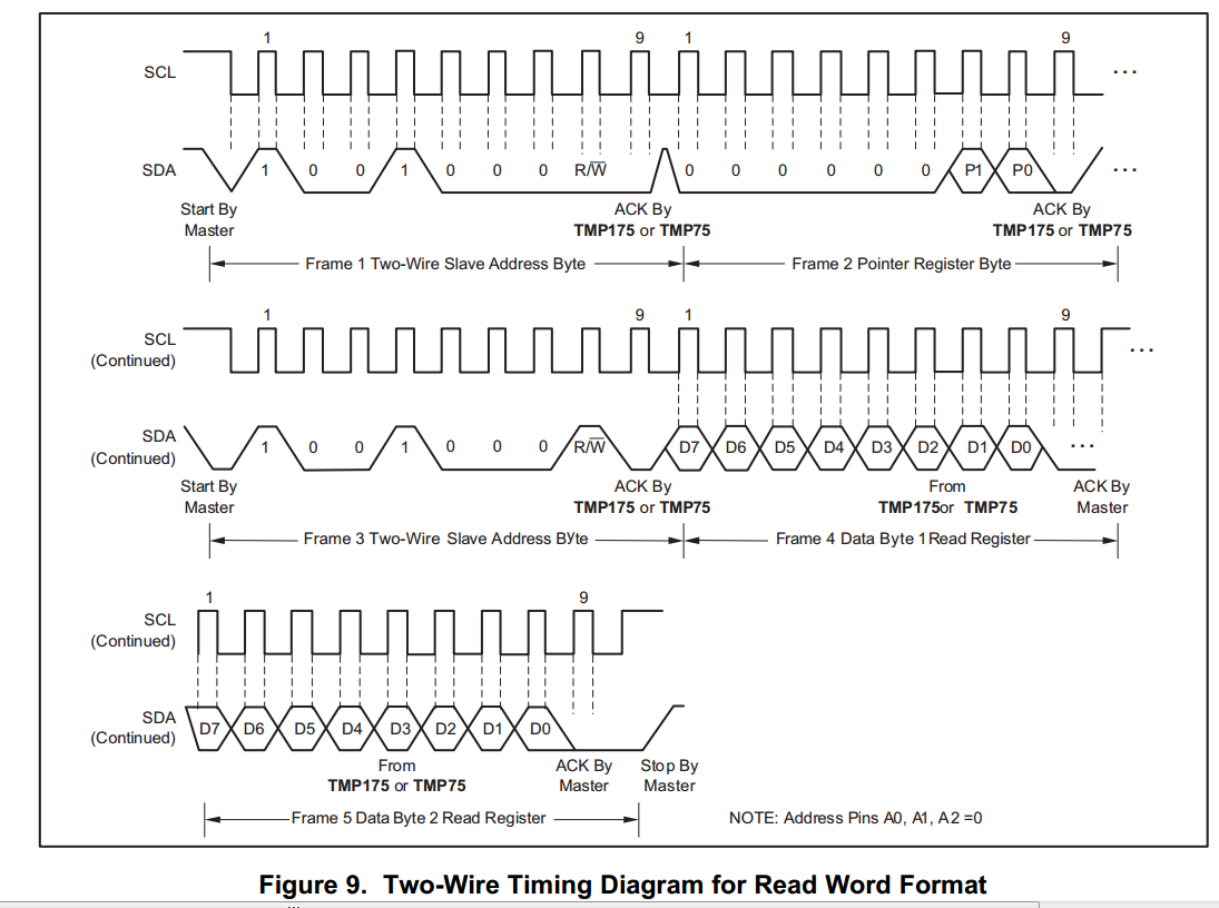 // frame 6: 从主机数据寄存器I2CMDR读第一个数据, 默认高8bit(MSB)
