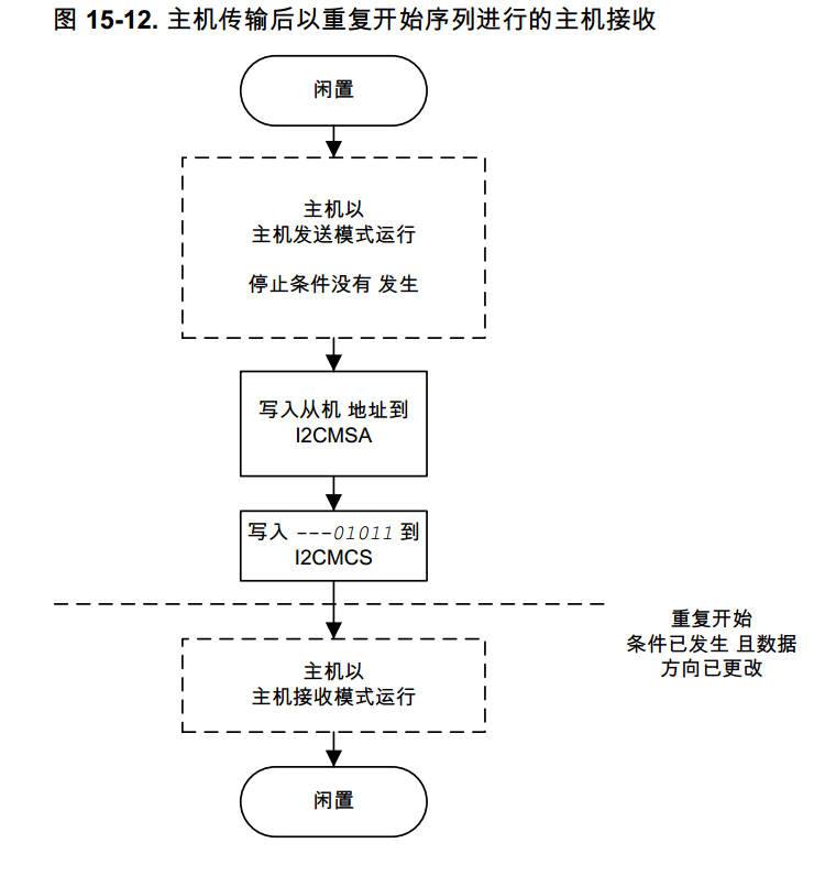 // frame 5: 向控制/状态寄存器I2CMCS 写 "---01011" 产生重复开始