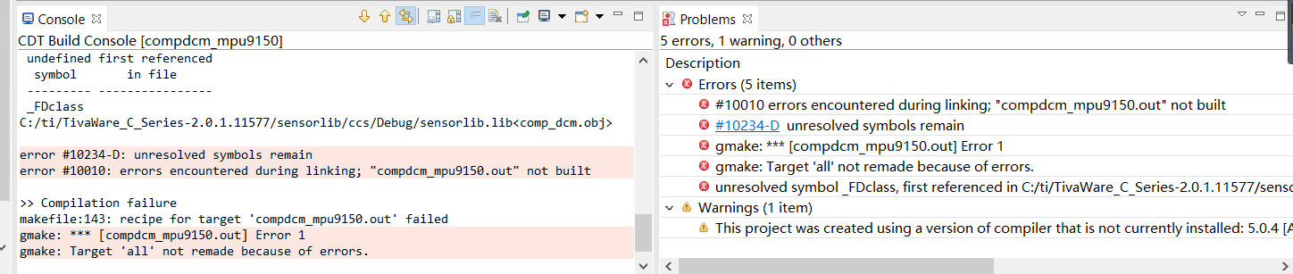 我用的ccs7.0为什么从TivaWare导入的9150的官方例程编译会出错啊,求解答,非常感谢!