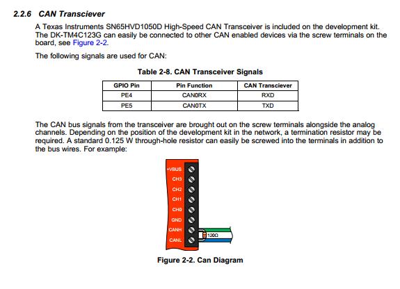 我看到dk-tm4c123g里有相关例程,程序里提到CANH与CANL,请问这两根线在EK-TM4C123GXL里是有相应的引脚吗对应吗?另外程序中的PE4与PE5两个口该怎么连接?