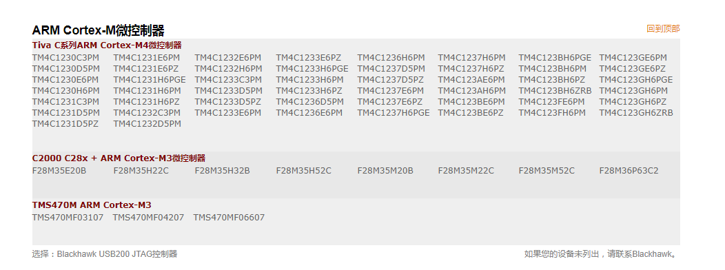 • 说支持stellaries系列,说的很笼统,我查了一下Blackhawk USB200 JTAG仿真器,它的支持就给的很明确。