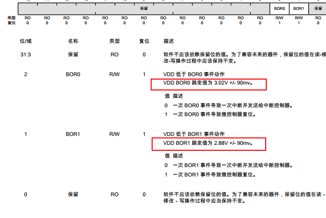 请问TM4C123单片机的Brown Reset的门限电平VVDD_BOR0、VVDD_BOR1是否可以修改?比如VVDD_BOR0为3.02V,能不能修改为2.90V?