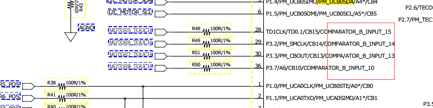 现在我要使用MSP430F5172的比较器B,对4个外部信号电平跟内部的参考电压进行比较判断,单独使用一个通道对外部电平信号进行比较都没有问题,
