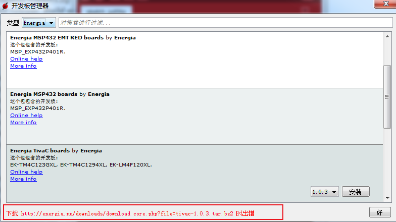 我在这步的时候安装出错,没法继续进行了,我猜测是因为服务器不在国外的原因,另外这个软件好久没更新了,还是推荐用CCS或者MDK、IAR进行开发。