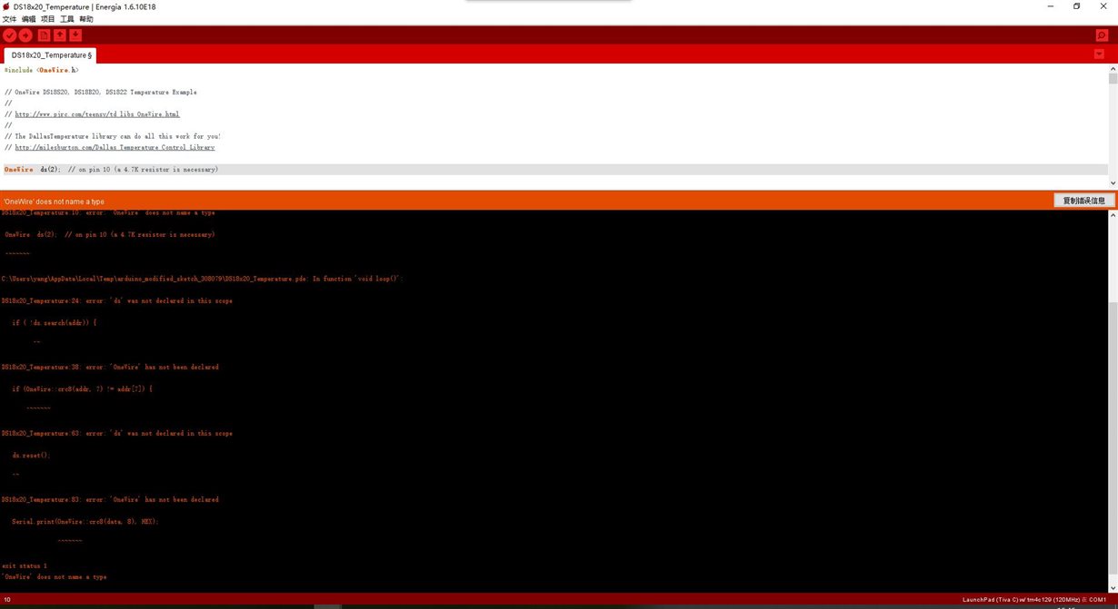 想使用TIVA链接DS18B20,可是出现了这样的错误,可是选择MSP430板子却只有警告,求救!!!