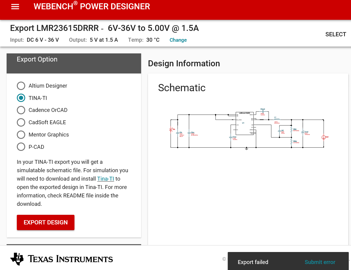 WEBENCH怎么没法成功导出TI_TINA文件