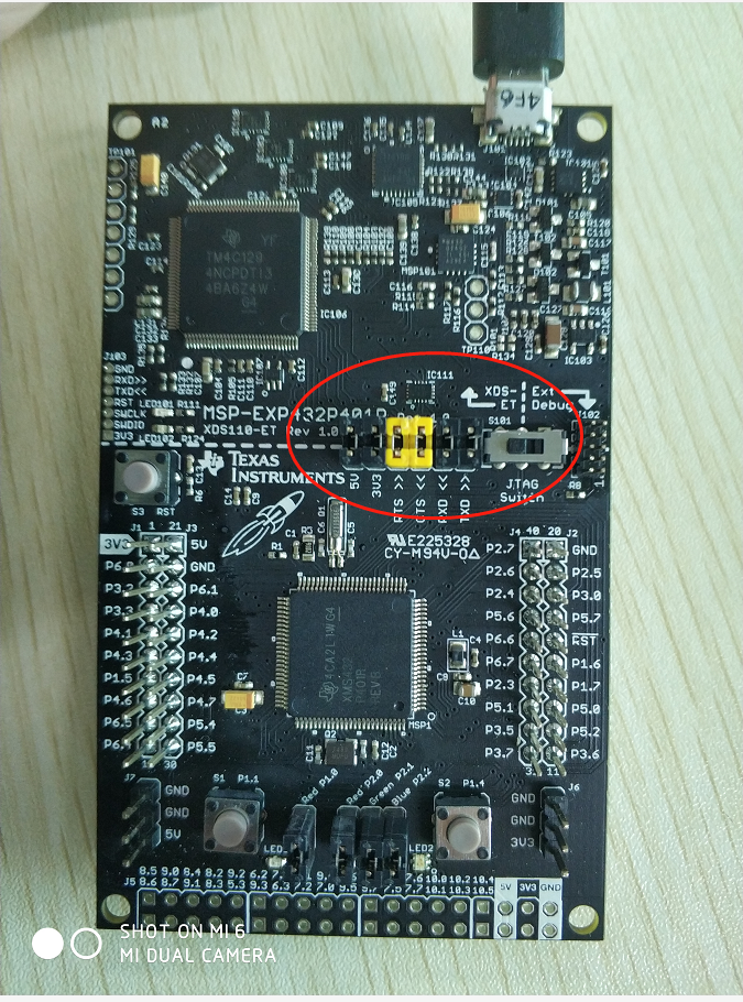请将RTS 和CTS的跳线插上,右边的开关请拨到左侧XDS-ET