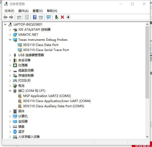 下载之后,未在设备设备管理器中出现关于TI的驱动设备