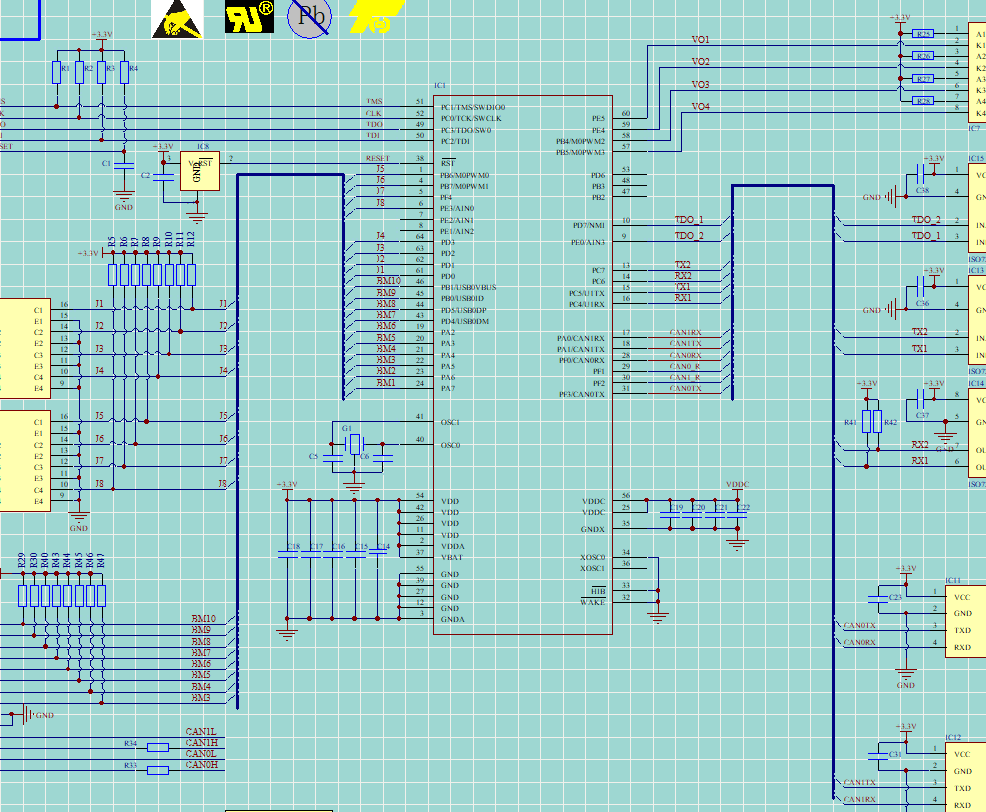 MCU电路主要由单片机、复位电路、晶振电路组成: