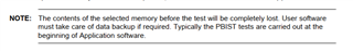 The PBIST test is designed to test the integrity of the embedded RAMs and ROMs and it is destructive to the data stored in the target RAM. The PBIST test can be treated as: