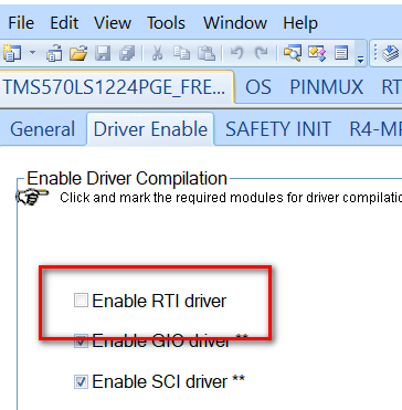 您现在是必须使用FREERTOS吗?我试了一下,在TMS570LS1224PGE_FREERTOS不能enable RTI driver. 不带FREERTOS的是可以的