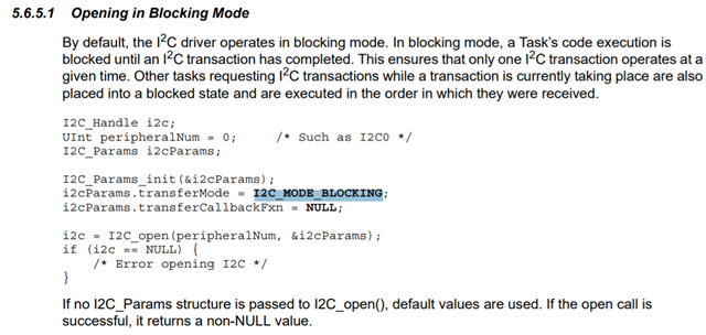 If the transferMode is set to I2C_MODE_BLOCKING, the transferCallback argument is ignored.
