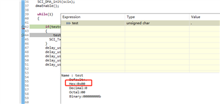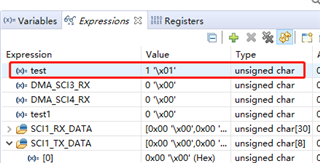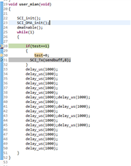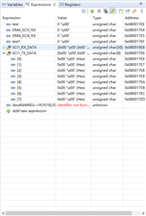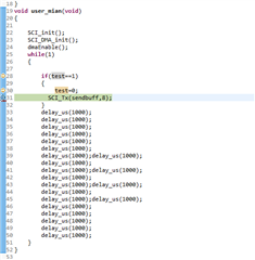 更改test变量后,程序可以运行到SCI_TX(sendbuff,8),但是SCI的DMA发送有问题,处如图: