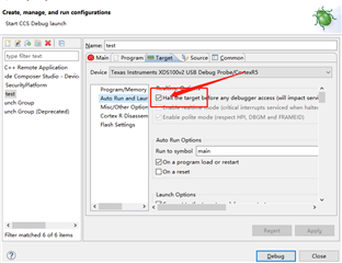 在 勾选Halt the target before any debugger access 情况下,SCI的DMA发送和接收异常确