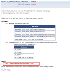 你好,目前我们从SL_RM57L843_NoOS移植了SL_SelfTest_CAN( )这个API,但是试了很多种方式包括更改HCG的配置(勾选了CAN的Enable Ram ECC),或者换它形参列表里的测试类型,发现它的返回值retVal始终是0,也就是说这个API根本没起到任何作用,也不知道问题究竟出在了哪里,还望指教 谢谢~