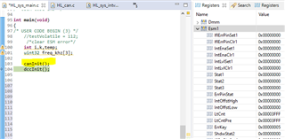 您好,如果不调用 canInit() ,那么 CAN 模块处于复位状态,并且 HAL GUI 中的 CAN RAM ECC 配置未编程为 CAN 控制寄存器。