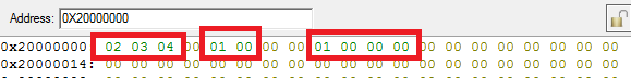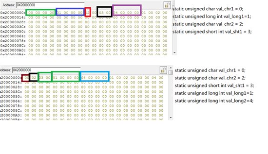 • 如果你在代码中定义一个单独的Long int 或者Short int,或者char, 在RAM中都会占用一个32-bit的空间。