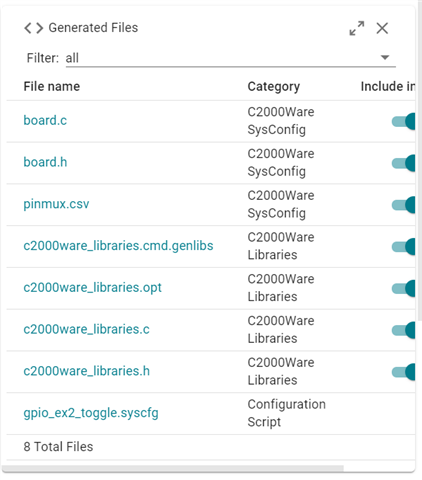 在CCS的工程里加入syscfg,配置GPIO时,是否可以选择单独生成GPIO.c和GPIO.h的文件,而不是跟其他外设的配置一起把配置代码都生成在board.c和board.h文件里。类似地可以单独生成ADC.c和ePWM.c这样的配置文件?