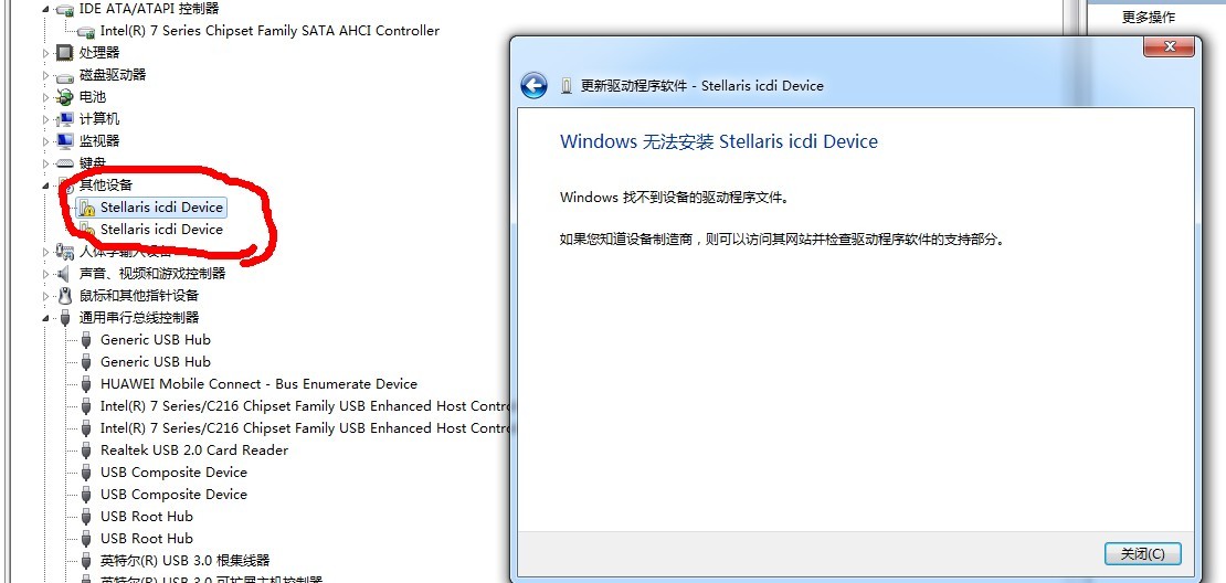 到这里下载最新的ICDI驱动。解压后手动浏览并逐个安装。