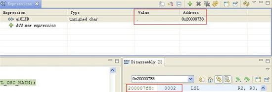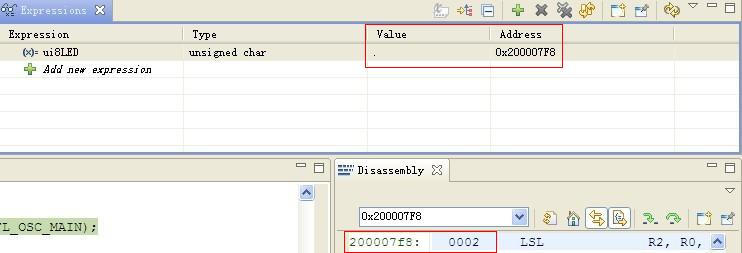 如图 ,在Expressions窗口,变量ui8LED的值不显示,但是在Disassembly窗口根据ui8LED的地址找到它的值为2,请问此问题如何解决呢,这可是debug最基本的功能啊。谢谢