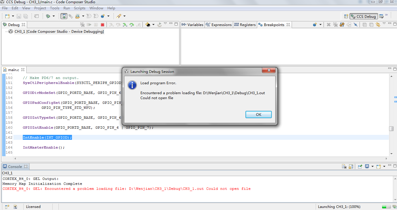 在烧录代码时遇到如图所示的提示,希 望可以告诉我问题出在哪里?怎么解决?谢谢!