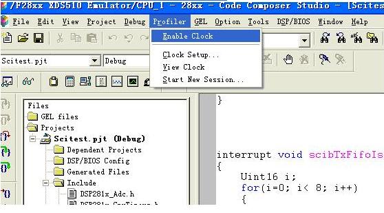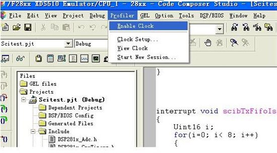 1. 选择ccs的菜单Profiler中的enable clock,如图所示。