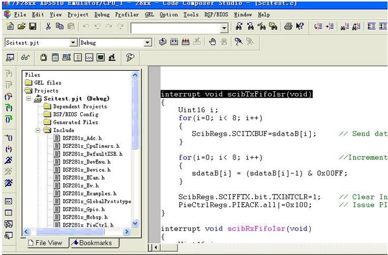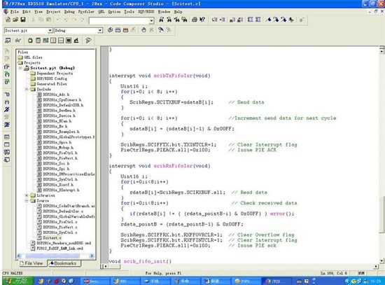 1.进入CCS环境,装载已有工程,并load生成的.out文件,并找到要察看代码执行周期的代码处。如图1所示。