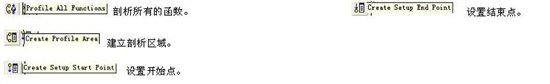 5.以剖析函数为例,找到该函数,然后将光标放在该函数的函数名上,选择建立剖析区域按钮,图中用红框框起来的那个按钮。如图6所示。