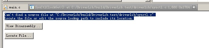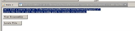 SysCtlClockGet用的是库函数编译的吧,工程里没有源码所以调试的时候找不到,没关系的。