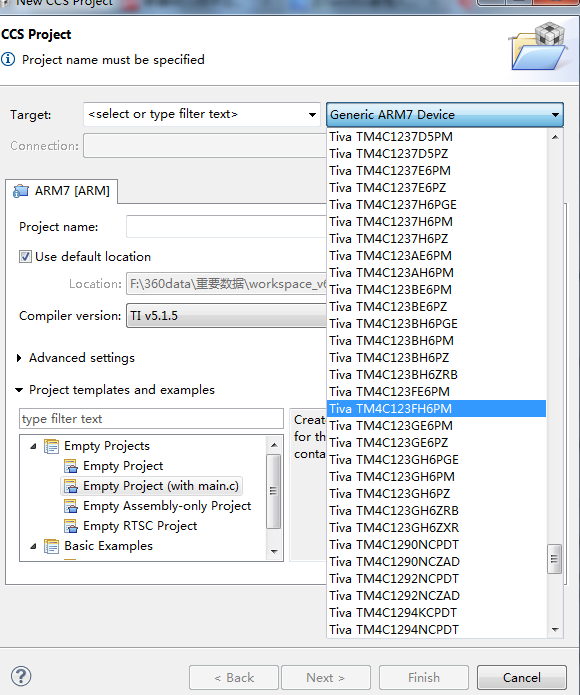 我用CCS V5 开发TM4C123FH6P. 在下面的界面