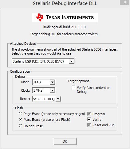 使用全片擦除后,就不能在下载仿真,仿真器设置如下。