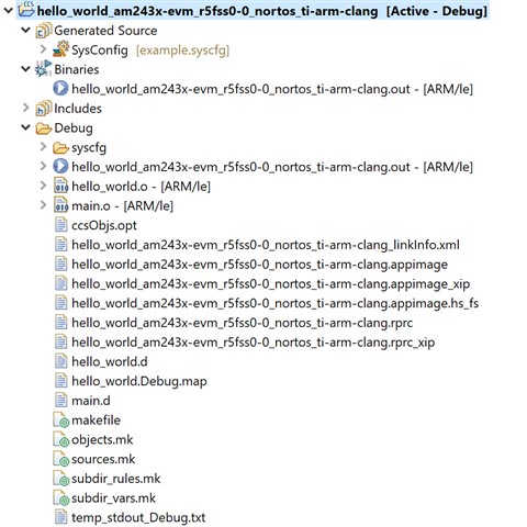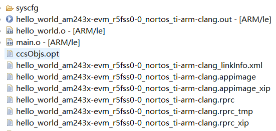 使用SDK例程中 “hello_world_am243x-evm_r5fss0-0_nortos_ti-arm-clang” ,在编译出的文件中找不到 带有hs_fs后缀的二进制文件,请问是否需要额外设置?