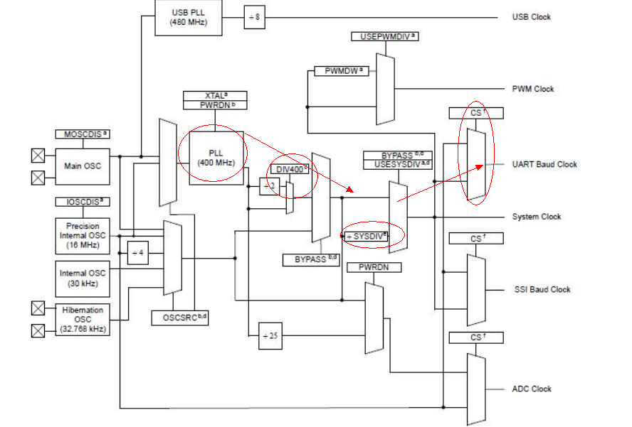 SysCtlClockSet(SYSCTL_SYSDIV_2_5 | SYSCTL_USE_PLL| SYSCTL_OSC_MAIN |SYSCTL_XTAL_12MHZ);问题3,这个配置出来的时钟是80M吗,问题4,还有那个锁相环出来都是400M吗?