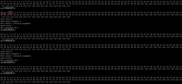 上图3是SPI双机通信程序运行一段时间后(此过程中任然对从机发送数据第4字节进行定时改变赋值),SoC的SPI主机程序读取的从机数据发生偏移。