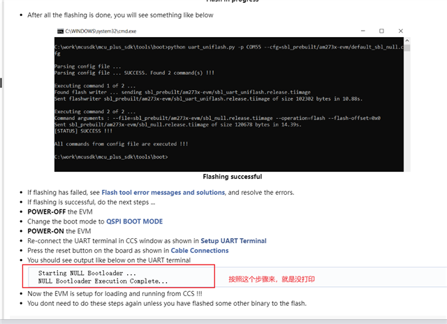 我的问题:固件跟烧录操作是否有啥问题?看烧录的文件中,sbl_qspi.release.tiimage 是没经过编译,直接使用的。现在烧写完毕后,重启无任何打印,请问是有什么问题呢?