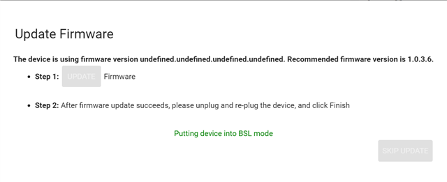 按照提示进入BSL模式,然后GUI就会升级固件。