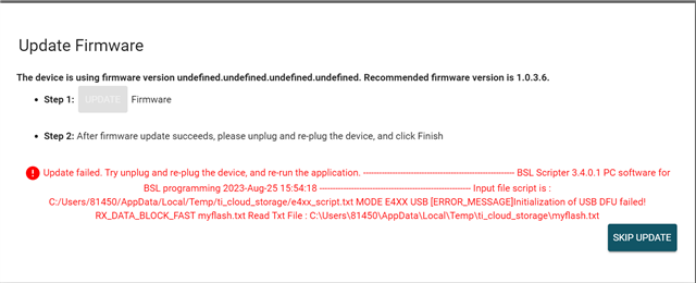 好的,多谢。我们是在调试自己的板子,使用的是MSP432E401Y Launchpad。第一次连接后显示需更新固件,但更新失败